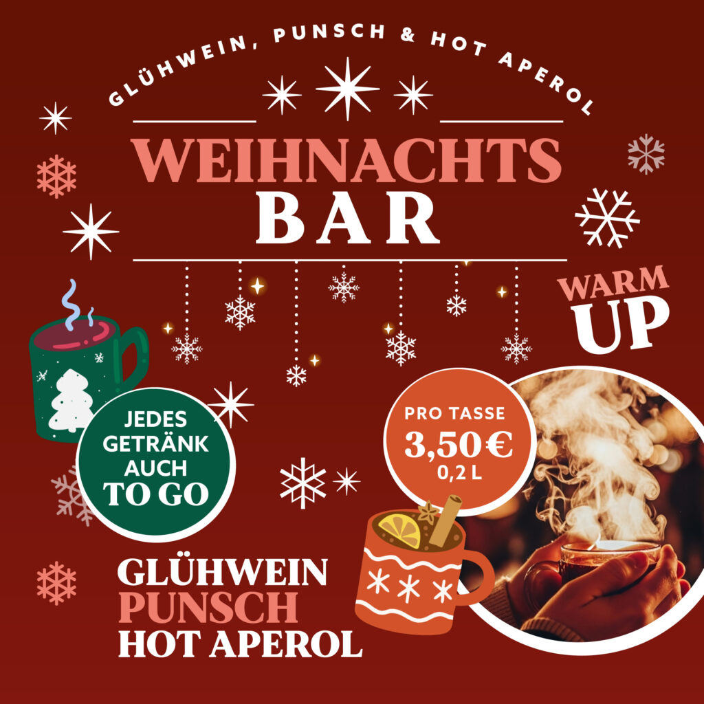 Unsere Weihnachtsbar ist zurück! Genießt aromatischen Glühwein, fruchtigen Punsch oder unseren beliebten Hot Aperol und macht es euch bei uns so richtig gemütlich.